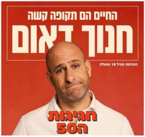 אחרי עשרות הופעות מול אולמות מלאים ברחבי הארץ, אני פותח סיבוב הופעות לכבוד יומולדת 50 עם מופע חד, מצחיק וכואב, שמערבב בין הביוגרפי לאקטואלי, בין משפחה לביטחון, בין דיכאון לצחוק בלתי נשלט.